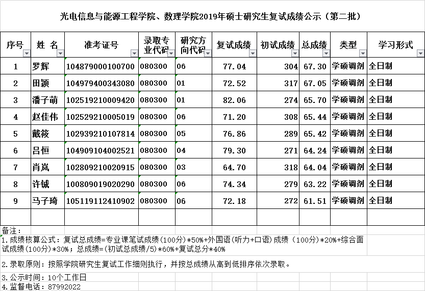 2019年硕士研究生复试成绩公示(第二批)