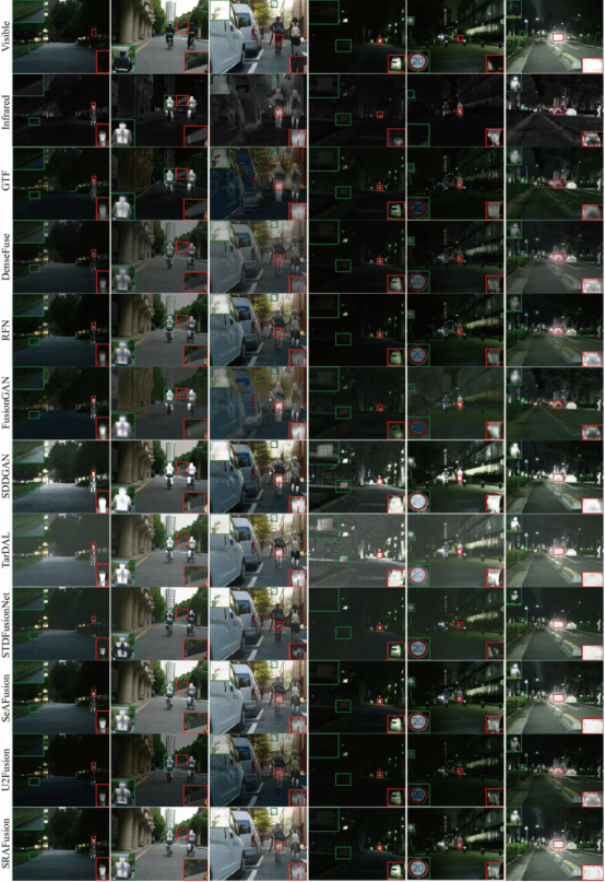 红外传感器在具有挑战性的天气照明等条件下也能捕捉物体的热辐射信息,但红外图像往往缺少细节描述。可见传感器捕捉到的图像包含丰富的纹理细节,但是易受天气照明等条件的影响。两者优良互补的特点,使得红外与可见图像融合技术在民用领域(故障点检测、行人识别、自动驾驶)和军事领域具有广泛的运用。
