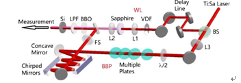 7月27日,美国光学学会旗下著名期刊《光学快报》在线刊发了团队最新研究成果“Ultrabroadband microjoule 1.8 μm laser pulse from a single-stage broadband pumped OPA”。论文第一作者为英国正版365青年教师洪作飞。洪作飞等团队成员原创性地提出了宽带激光泵浦的光参量放大方案。利用熔融石英薄片阵列提升飞秒泵浦光脉冲的带宽,并向泵浦光及种子光内引入相反方向啁啾,从而在中红外波段产生了宽带的闲频光脉冲,以1.8微米为中心波长,覆盖了1.2微米至2.1微米的超宽带范围。利用纯硅窗片压缩闲频光,从而获取了脉宽接近2个光周期的超短脉冲。该方案为超快光学的各类研究提供了稳定有效的中红外周期量级激光光源。