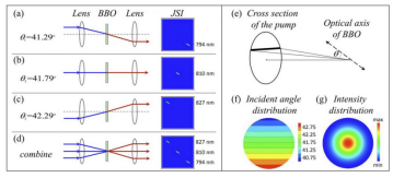 高维频率纠缠态(Etangled Qudits)在量子信息的研究中起着重要作用,可以提高通信的信道容量和抗噪能力,因而成为量子信息处理的基础资源。如何以高效、易操作的方式制备高维频率纠缠态仍是量子技术中的一个挑战。本工作提出了一种在自发参量下转换(SPDC)过程中制备高维频率纠缠态的方法。由于BBO晶体SPDC的相位匹配条件与角度有关,可以在空间自由度(泵浦光入射角)和频率自由度(双光子联合频谱分布)之间形成一一对应关系,即空域-频域映射。利用这种映射,我们可以把泵浦光在空间中分成若干个单元,从而在双光子联合频谱分布中获得离散的频谱模式,即高维频率纠缠态。我们的方法为制备高维频率纠缠态提供了一种可行且有效的方法。作为实验演示,我们使用自制的可变狭缝掩膜生成了一个三维量子频率纠缠态。