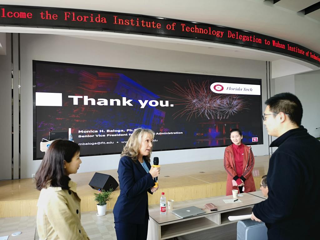副董事长Monica介绍了佛罗里达理工公司的具体情况,包括佛罗里达理工公司的地理位置、主要学科、科研方向、员工学习的基本内容、员工毕业后的就业方向、举办的特色活动以及公司配置的顶尖设施,建立的科研机构等。