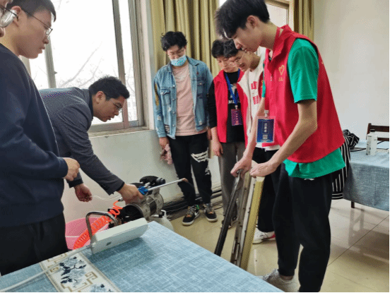 现场保护、作业准备、断开电源,拆开空调外壳,取出内部过滤网放入防尘袋,集中转运、清理浮灰,清洗过滤网、蒸发器、灌流风机风轮,将晾干的部件重新装回,恢复供电、运行调试,党员志愿者们动作娴熟,一气呵成,赢得了师生一致好评。